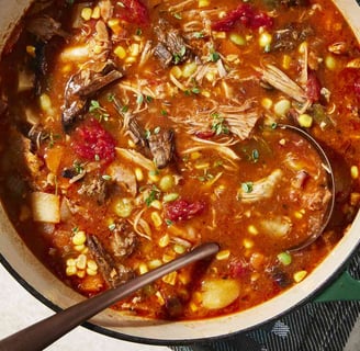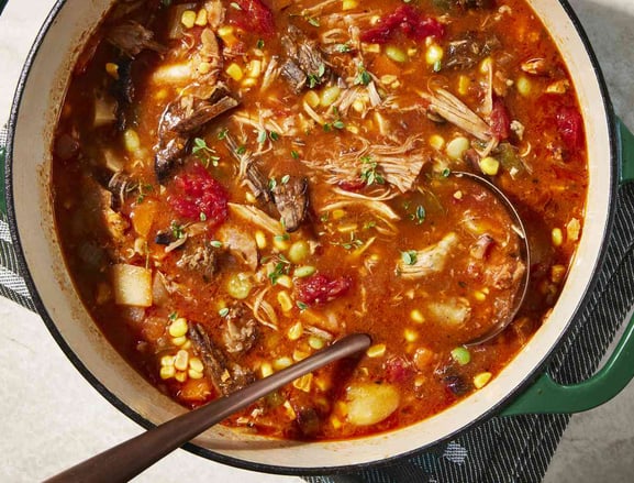 Burgoo is Kentucky’s version of a stew—a little bit of everything thrown into one pot and slow-cooked until it’s packed with flavor. Traditionally, it was made with whatever meats were on hand, but here’s a modern version.